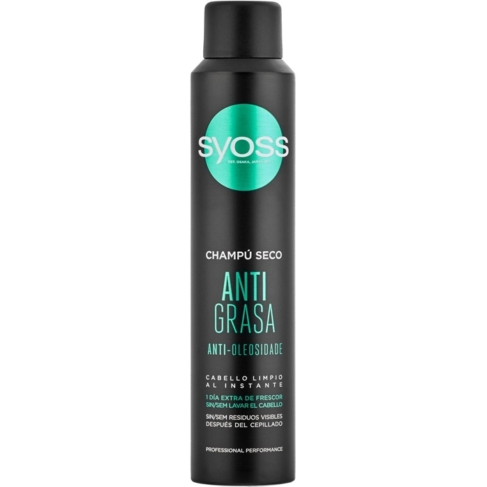 El champú seco Syoss Anti Grease Dry Shampoo ayuda a reducir el número de lavados de cabello simplemente rociando el champú seco en las zonas afectadas en caso de signos de cabello graso, eliminando la película de grasa de la superficie del cabello y así refrescándolos.