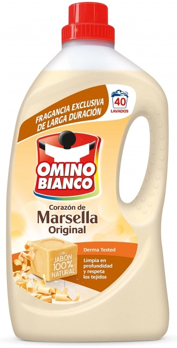 Omino Bianco detergente líquido de Marsella, enriquecido con una fragancia de Marsella, limpia en profundidad la ropa y deja un aroma fresco y duradero