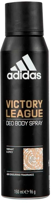 Desodorante en spray Adidas Victory League con fragancia masculina intensa y duradera que ayuda a mantener la piel fresca y protegida contra el mal olor durante todo el día. Su aroma combina notas frescas y especiadas con toques amaderados, creando una sensación deportiva y energética ideal para el uso diario.
