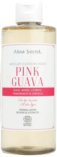 Pink Guava es un agua micelar que limpia y desmaquilla eliminando suavemente el maquillaje y las impurezas. Sus micelas naturales limpian los poros en profundidad, regulan la secreción sebácea y dejan la piel calmada, luminosa y saludable.