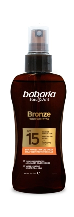 Bronze Fotoprotector Spray, Aceite Protector Solar SPF 15 de Babaria.