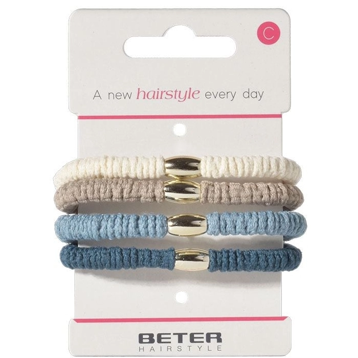 Coleteros elásticos en distintos colores, tres de ellos trenzados. Tonos tierra muy combinables y el rojizo con toques de glitter. Para coletas, trenzas o cualquier peinado que imagines.