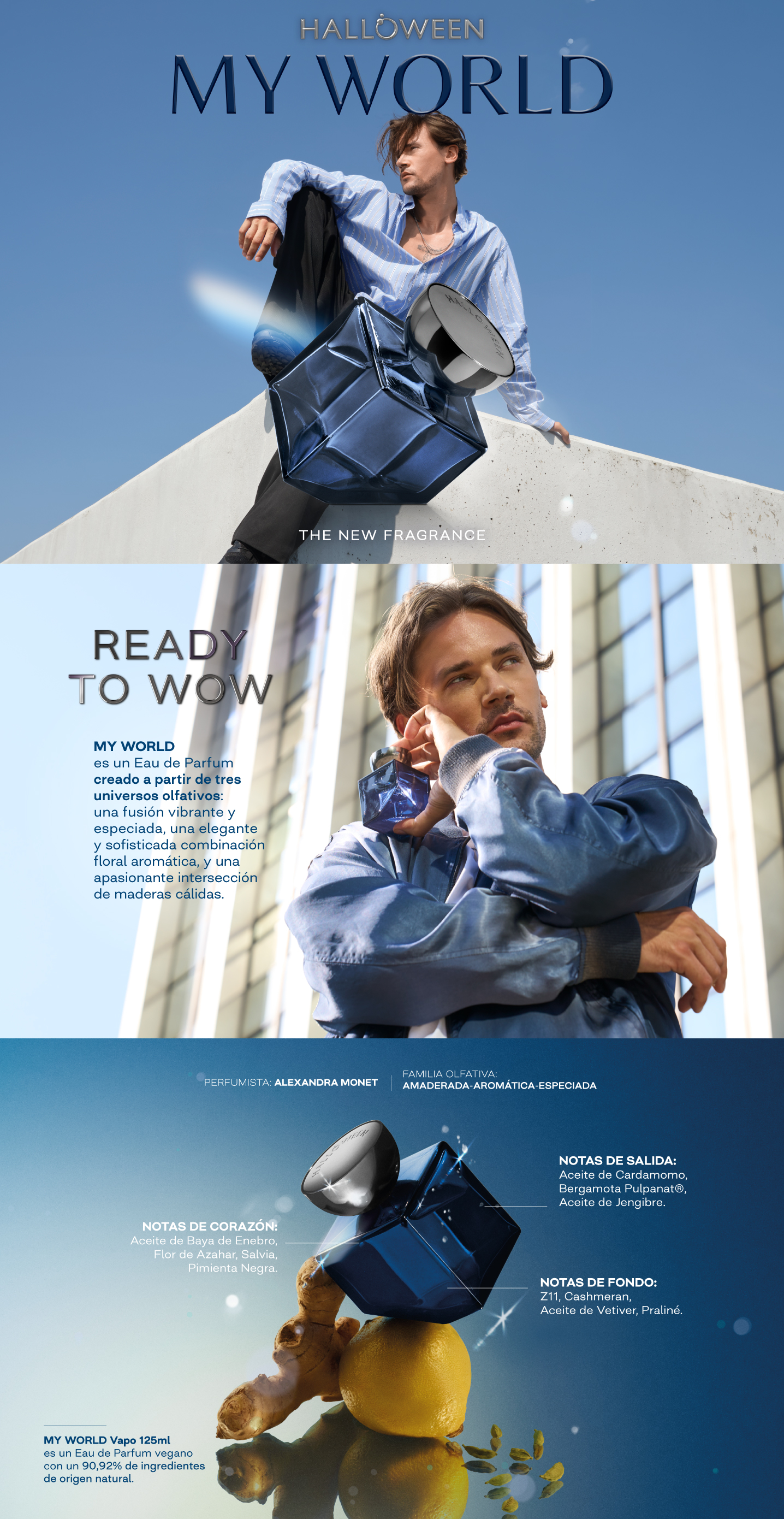 MY WORLD es el nuevo eau de parfum masculino de HALLOWEEN Perfumes para aquellos hombres que les guste dejarse sorprender, que aprecien lo inesperado, preparados para vivir experiencias que aporten bienestar y seguridad.