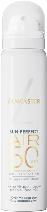 - Tecnología Full Light™ con patente pendiente: esta bruma para el cuidado de la piel Lancaster Sun Perfect SPF50 protege la piel de los rayos UVB, UVA, luz visible (incluida la luz azul) e infrarrojos, ofreciendo una protección de amplio espectro contra la exposición solar diaria.
