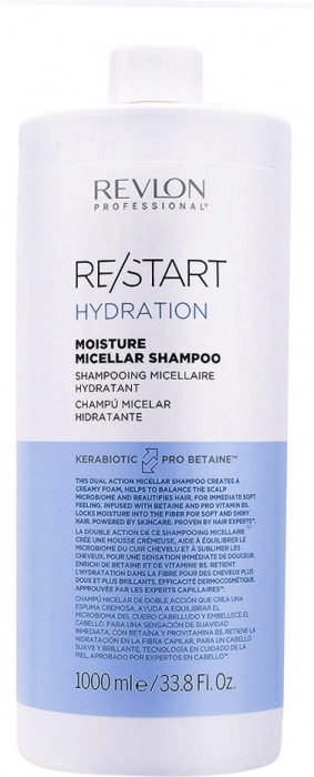 El champú Re-Start Hydration Moisture Micellar Shampoo es de doble acción, es decir, produce una espuma cremosa que ayuda a equilibrar el microbioma del cuero cabelludo y realza el cabello con una suavidad inmediata. Enriquecida con betaína y pro vitamina B5. Retiene la hidratación en la fibra para conseguir un cabello suave y brillante.
