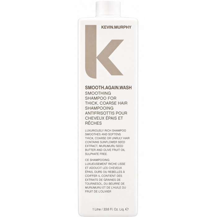 Domina los rizos rebeldes y el cabello encrespado sin esfuerzo con el champú Smooth.Again.Wash de la marca Kevin.Murphy. Este producto contiene moléculas de proteína de queratina que ayudan a restaurar la estructura de cada hebra de cabello. Estas moléculas se sienten atraídas por las áreas dañadas debido a su carga positiva, permitiéndote lograr mechones suaves y uniformes, a la vez que añades volumen y manejabilidad. Además, la fórmula está enriquecida con aceite de monoi para suavizar y proteger tu cabello, así como manteca de murumuru para restaurar el equilibrio hidrolipídico. El extracto de raíz de girasol aporta humedad y realza el brillo. El producto tiene una textura agradable, una fragancia deliciosa y espuma bien. Está elaborado sin el uso de sulfatos ni parabenos.